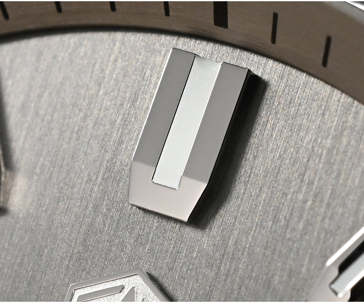 Dial Color: Desert Texture Dial/Brushed Dial, 3D Hexagon Logo, Applied indices, Date Window at 3 O'clock